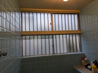 以前にも似たような現場がありましたが、既存の窓が段窓になっており、システムバスルームの壁の上に出てしまう状態でした。
