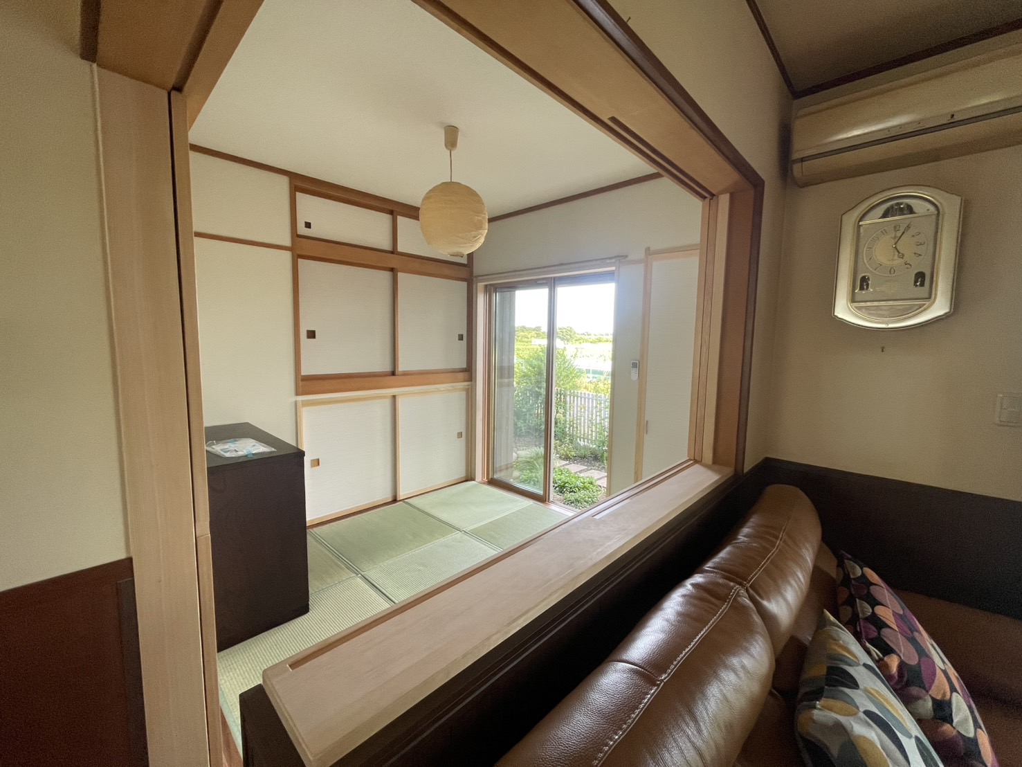 腰窓を大きな吐き出し窓に変更、おおよそH:30cmある段差をなくし、