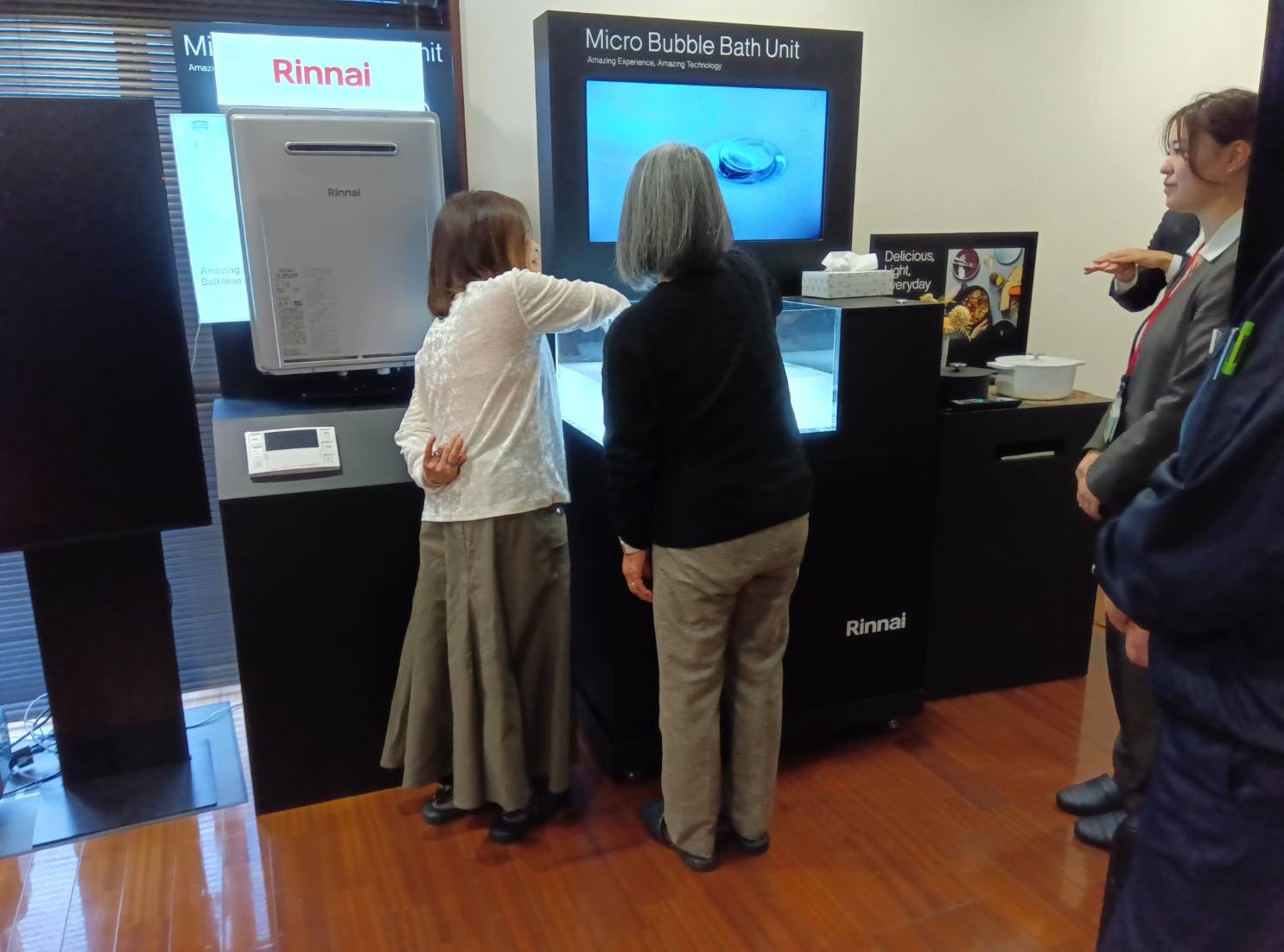 会場では、最新のガスコンロやレンジフード、ガス乾燥機「乾太くん」、ウルトラファインバブル給湯器など、リフォームで人気の設備を実際に触れながら体験していただきました。
