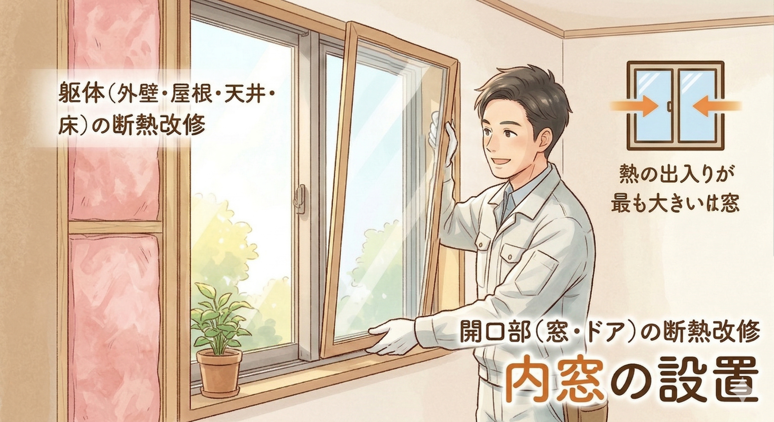 内窓の設置: 今ある窓の内側にもう一つ窓を付ける、非常に効果の高い方法です。