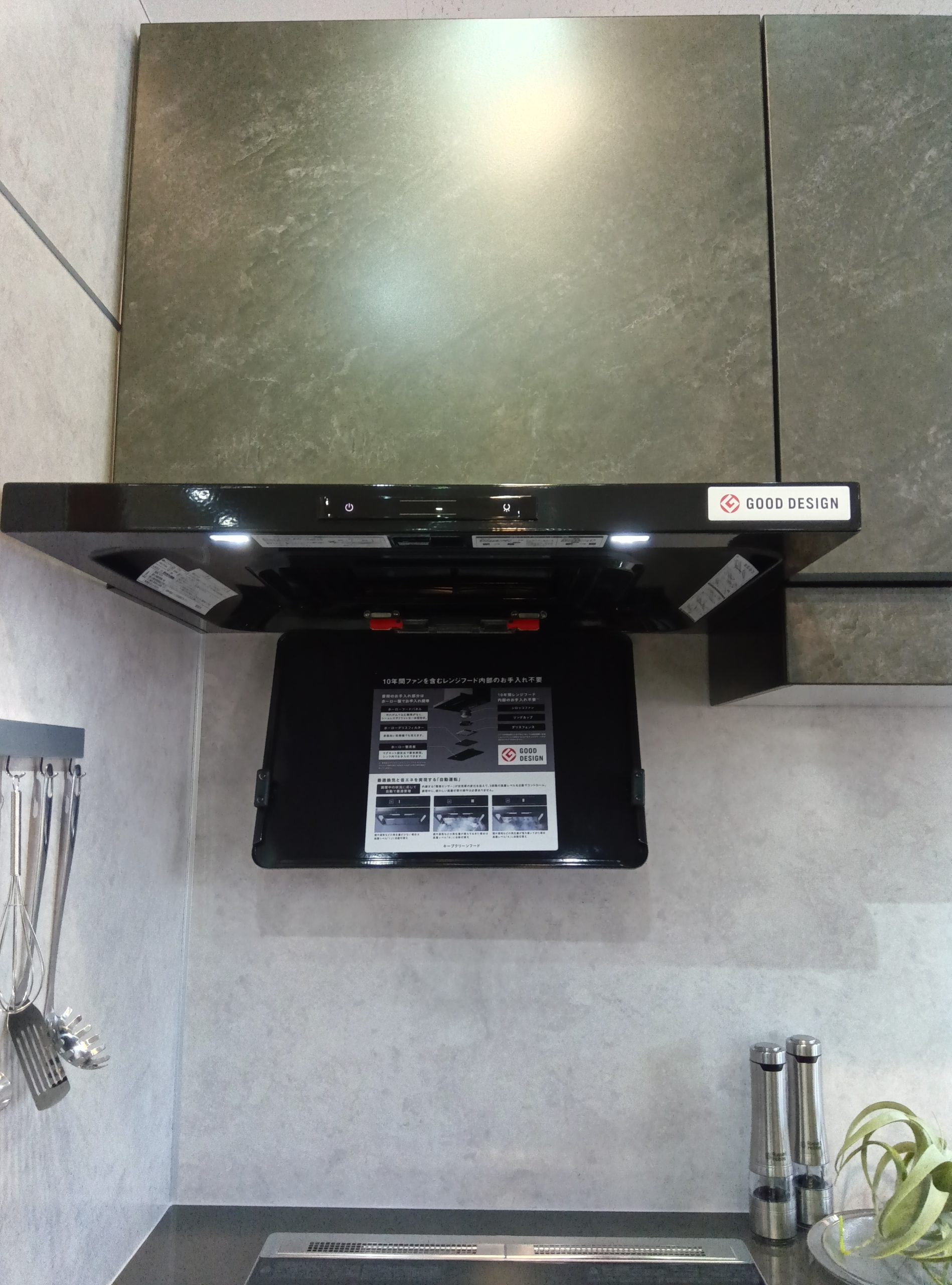 こちらの「キープクリーンフード」は10年間レンジフード内部のお手入れが不要なレンジフードです。お手入れが必要な部分はホーロー製で出来ています。グリスフィルターは食洗器で丸洗いすることもできるんですよ。フードパネルはつなぎ目がなく、さっと拭いてお掃除が簡単にできます。
