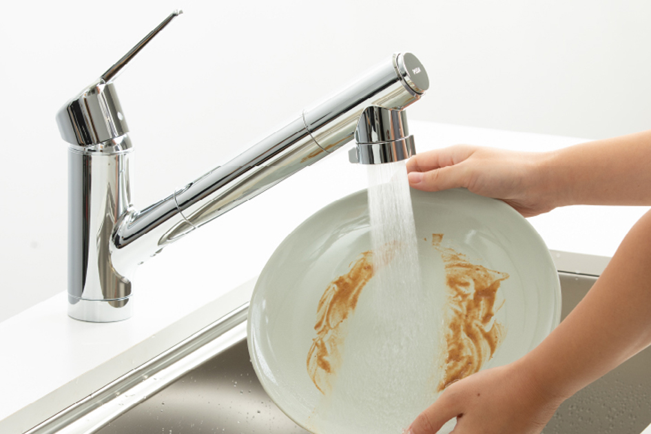 ウルトラファインバブルは水と空気を効率よく混ぜ合わせています。これによって使用水量を抑えながらもしっかり洗える力強い水流を実現しています。水道代の節約につながり、日常の洗い物も快適に行えます。