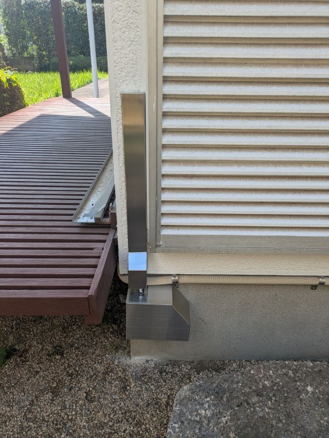 日本は地震大国ですのでいつどこで地震が起きてもおかしくありませんそこで後付で補強できる減災商品をご紹介いたします。建築基準法改正以前の、平成12年4月以前に建てられた家は柱の引抜き耐力が0.3トンで弱いです。外部からこの後付ホールダウン金物を付けると耐力が6.6トンの22倍も強くなります。つける場所は四角い家なら4角のみの4ヶ所の出隅のみでそれ以外の形状の家は出隅は必須で後は家の大きさによります。基本的に柱が抜けなければ家がつぶれずに命が守れます。工事費も1ヶ所10万円ほどで割安です。