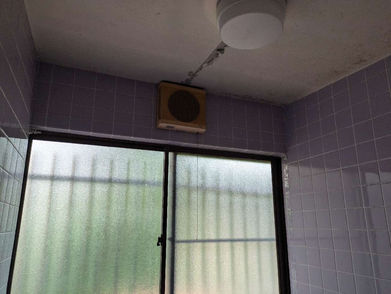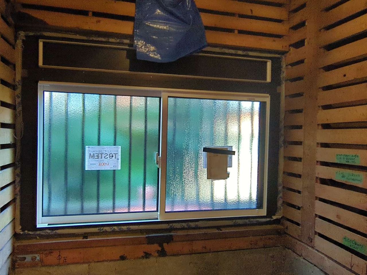 一点問題点があり、窓のサイズが大きい&高く取り付けられており、システムバスルームの壁高よりも高い状態でした。