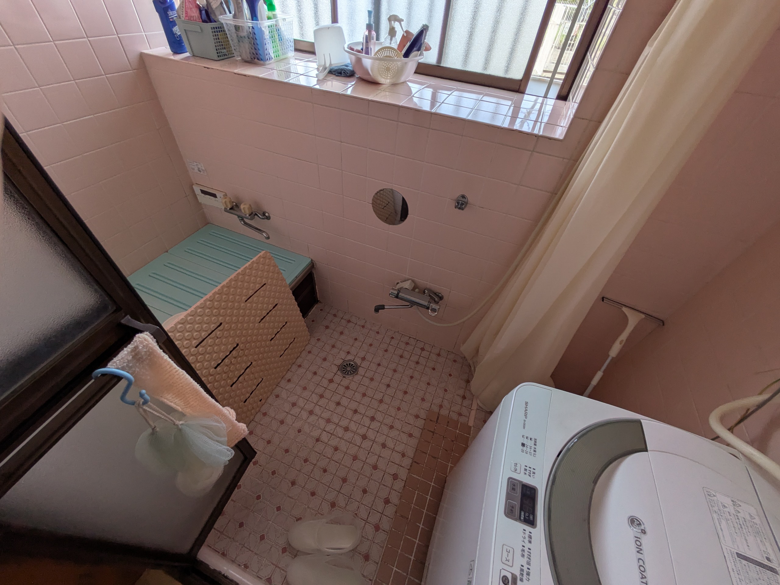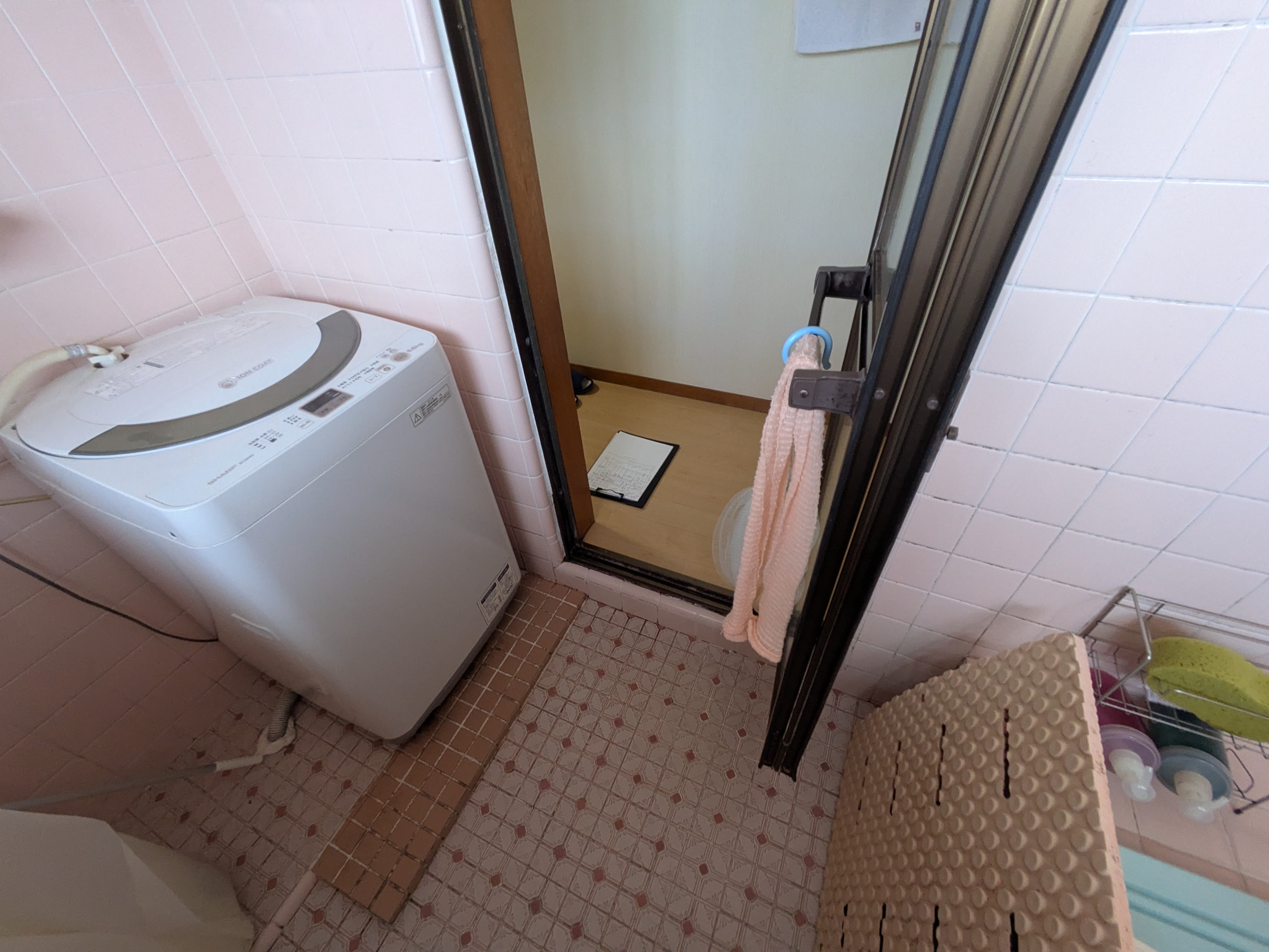 タイル張りの浴室を改修し、温かく入りやすいお風呂と便利な洗濯スペースが生まれました。
