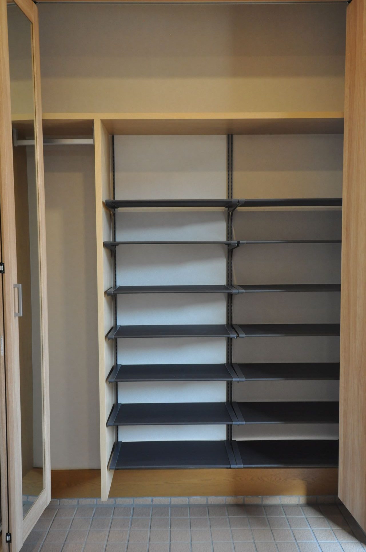 玄関収納は表側にクローゼットの扉を取り付け、中は造作しています。造作する為、お客様の好みに合ったデザインにすることが出来ます。